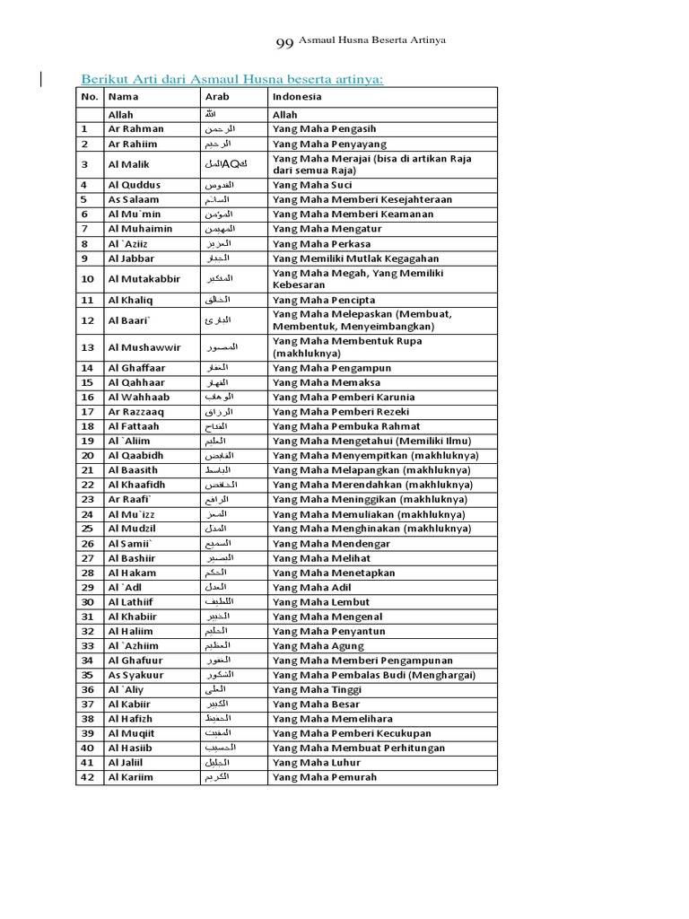 99 Arti Latin Dari Asmaul Husna Beserta Artinya Dan Manfaatnya Pdf